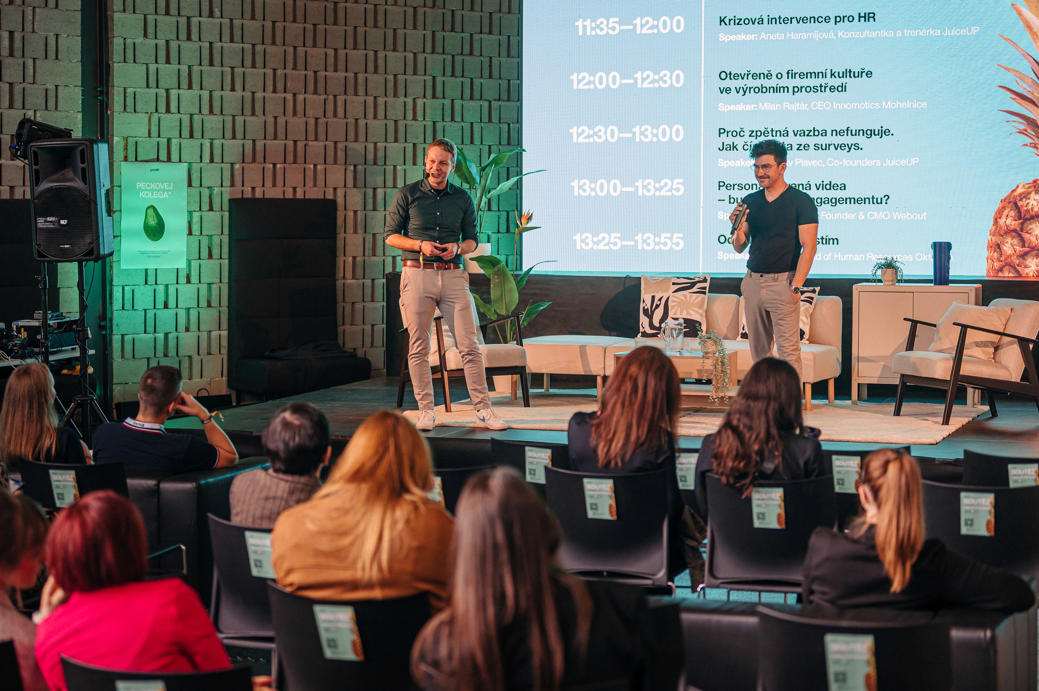 Večer pořádá společnost JuiceUP, která se dlouhodobě věnuje tématům people & culture, leadershipu a práce s angažovaností ve firmách. Engagement v JuiceUP chápeme jako vztah zaměstnance k práci a k firmě – a proto pomáháme organizacím vytvářet prostředí, kde lidé pracují ne proto, že musí, ale proto, že skutečně chtějí.